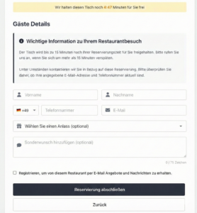 Lassen Sie nicht OpenTable oder Dish über Ihre Marge entscheiden. Kontaktieren Sie mich für eine individuelle Einschätzung. Gemeinsam integrieren wir das provisionsfreie Reservierungssystem, das perfekt zu Ihrem Restaurant passt – ohne monatliche Mietkosten und mit voller Datenhoheit.